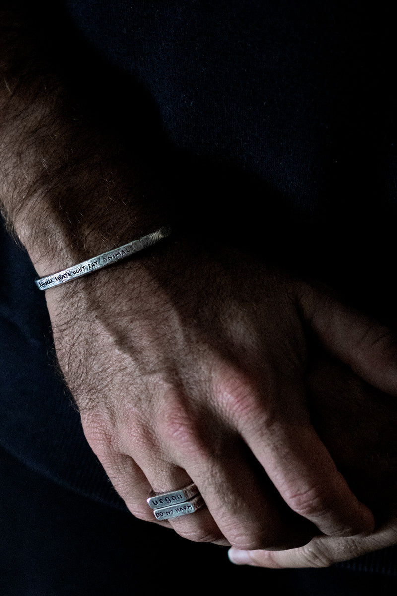 Crafted from high-quality 925 silver, this raw genderless cuff is a versatile piece that adds a touch of edgy style to any outfit. Designed to be adjustable, it effortlessly fits wrists of all sizes. This cuff is solidly constructed, ensuring durability and longevity.