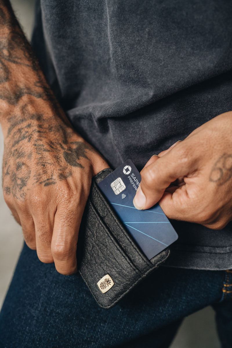 The compact and functional Sabbath Card Holder is the minimalists answer for a wallet. Made with Vegan Piñatex Pineapple Leather it features an 8mm round magnet placed in the centre compartment to keep notes safe.
