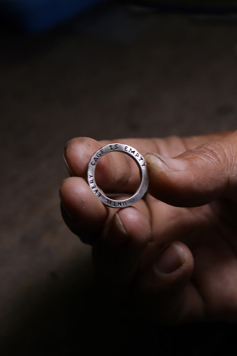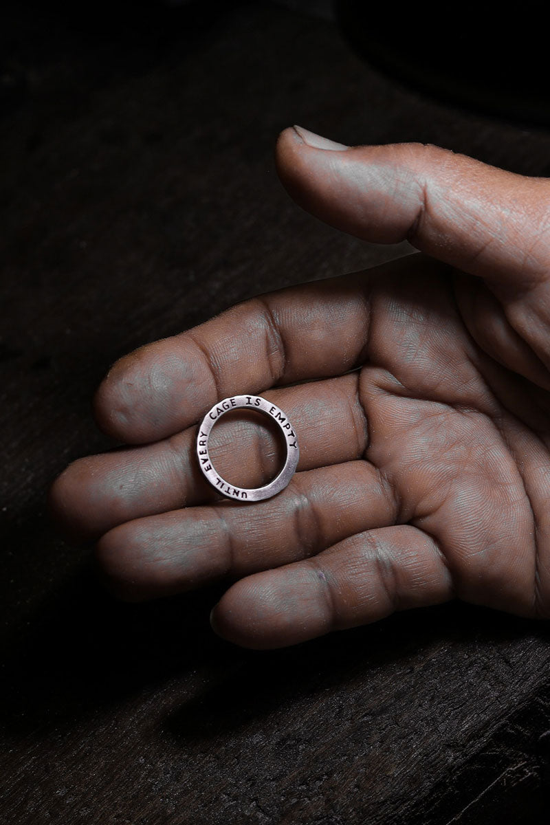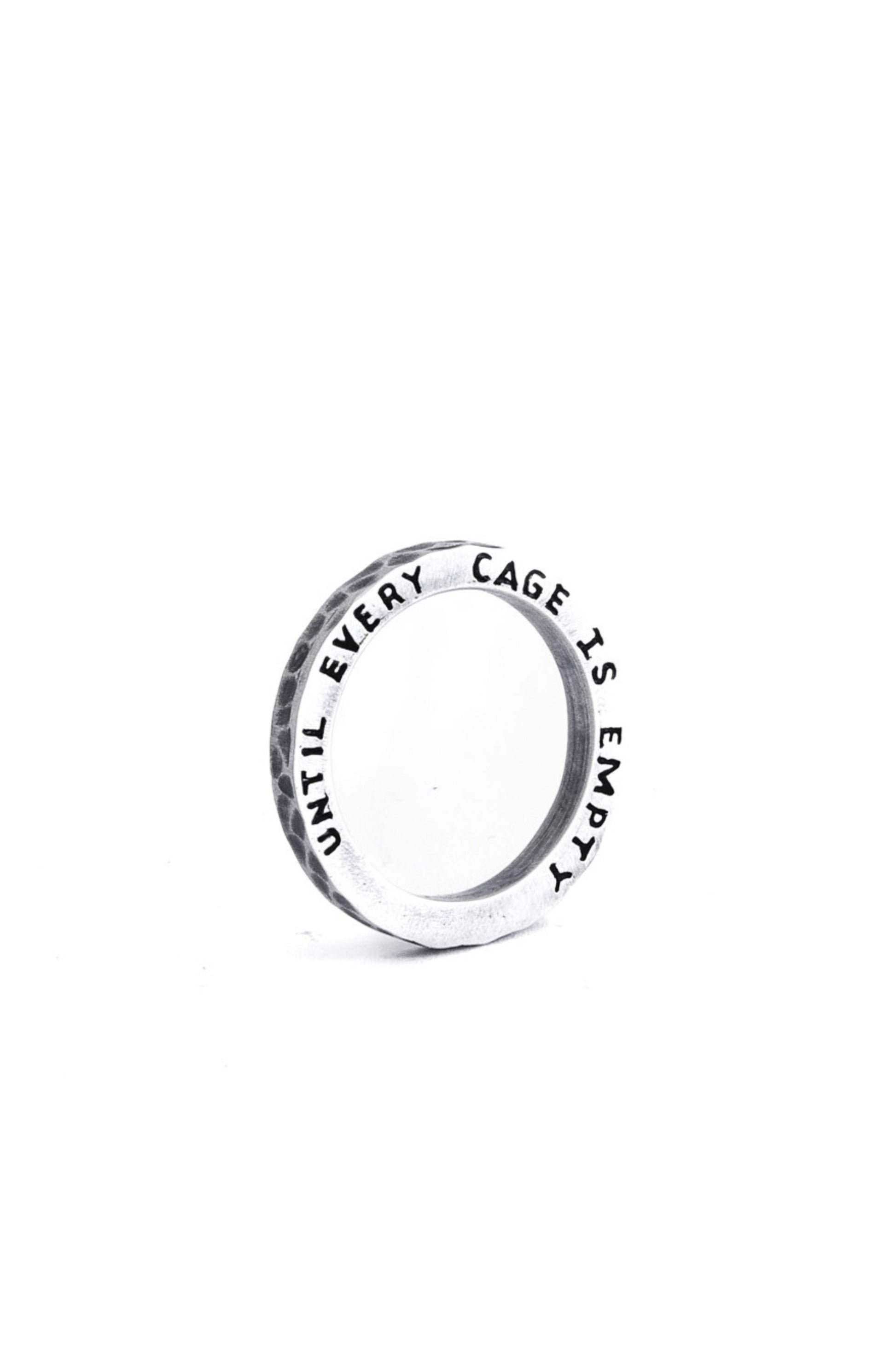 Designed by vegans for vegans, our "Until Every Cage is Empty" ring is a daily reminder of the fight for freedom and compassion. Crafted with care, this ring carries a powerful message, etched to inspire and empower you every day.
