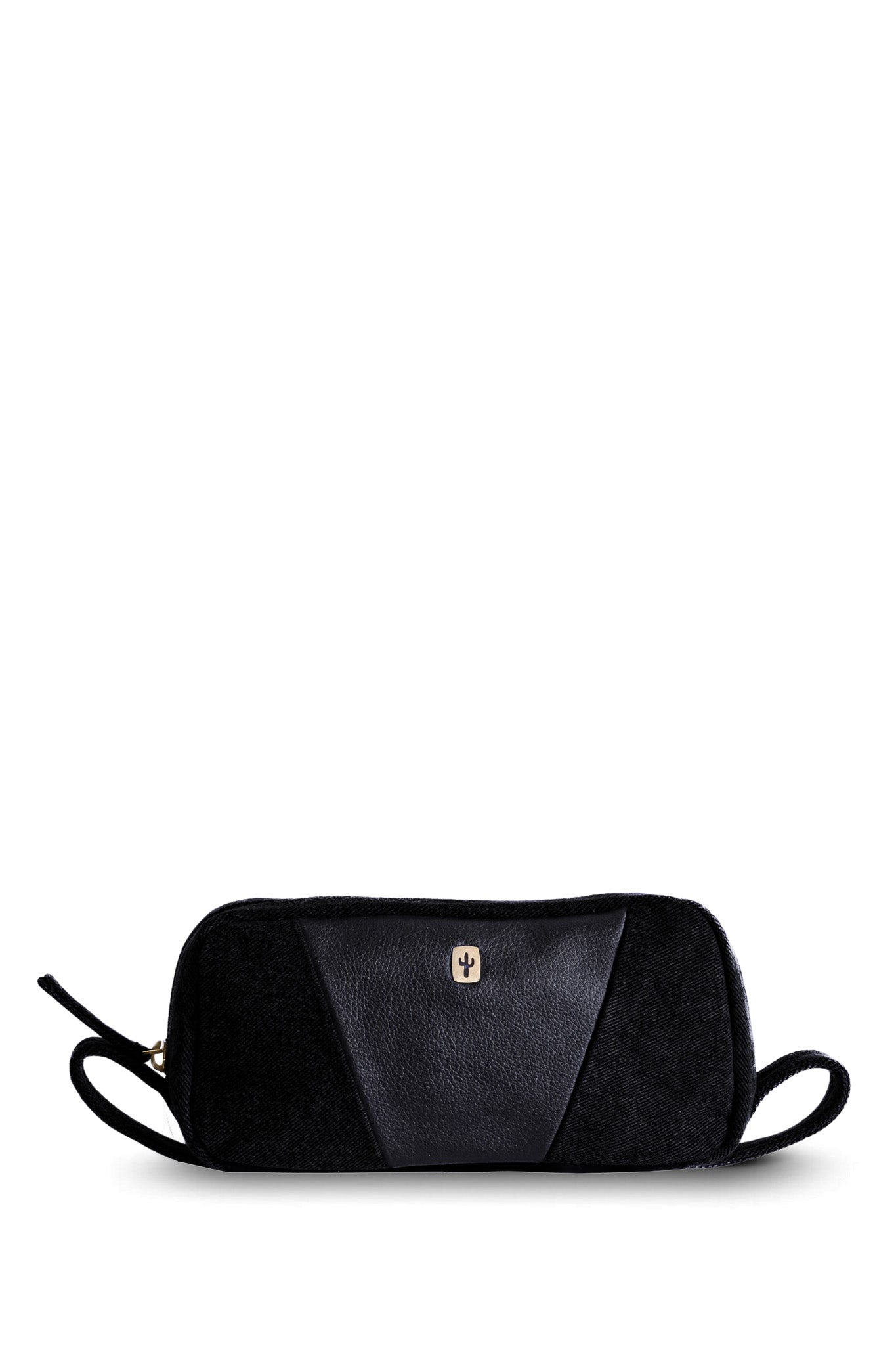 Ethically made from durable cotton canvas and cactus leather, this unisex mini toiletry bag is designed to carry your daily essentials—without compromising on values.